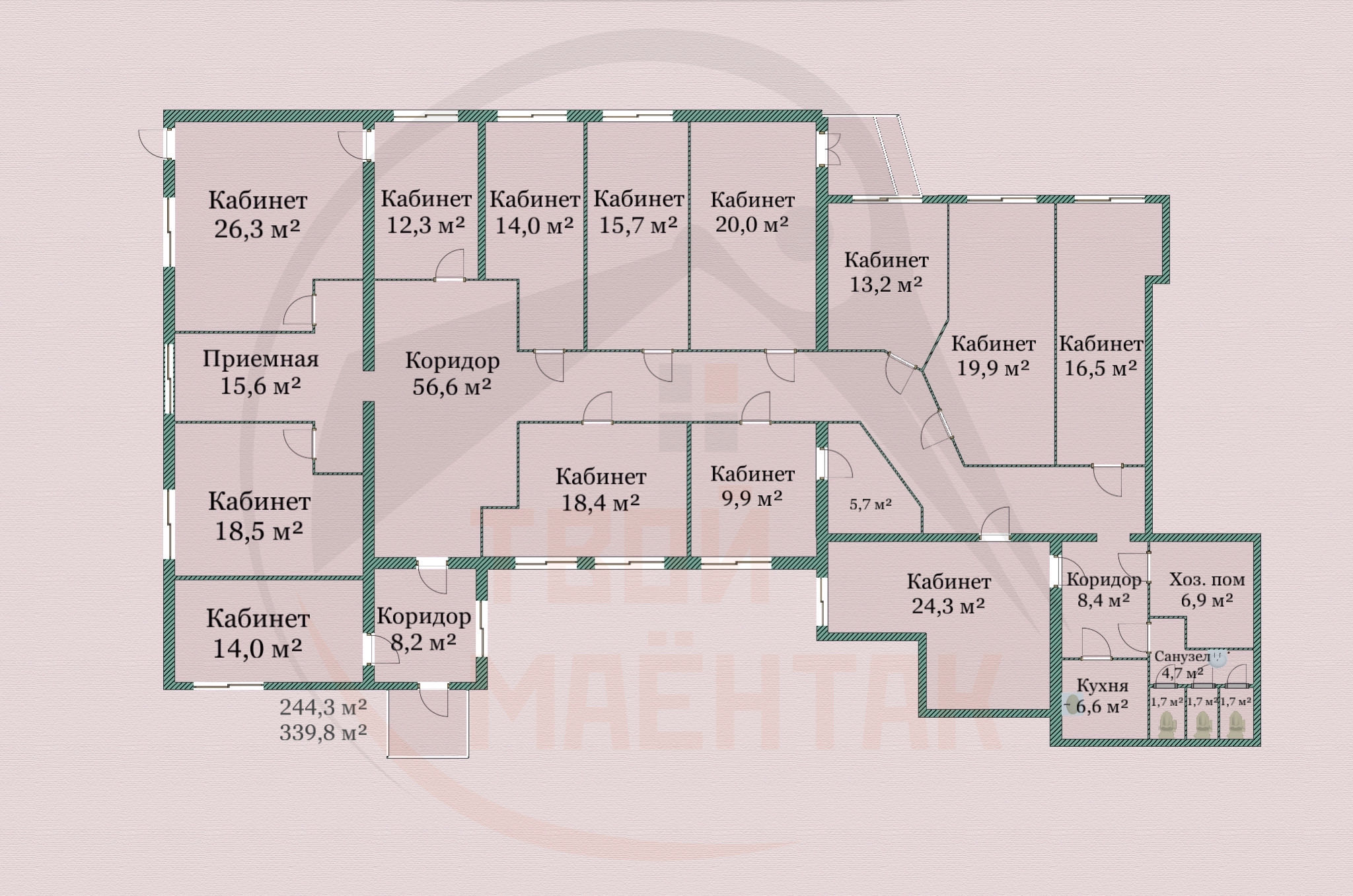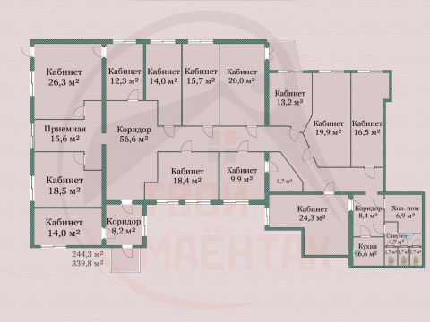 Площади помещений от 9,9 кв.м. до 56,6 кв.м.