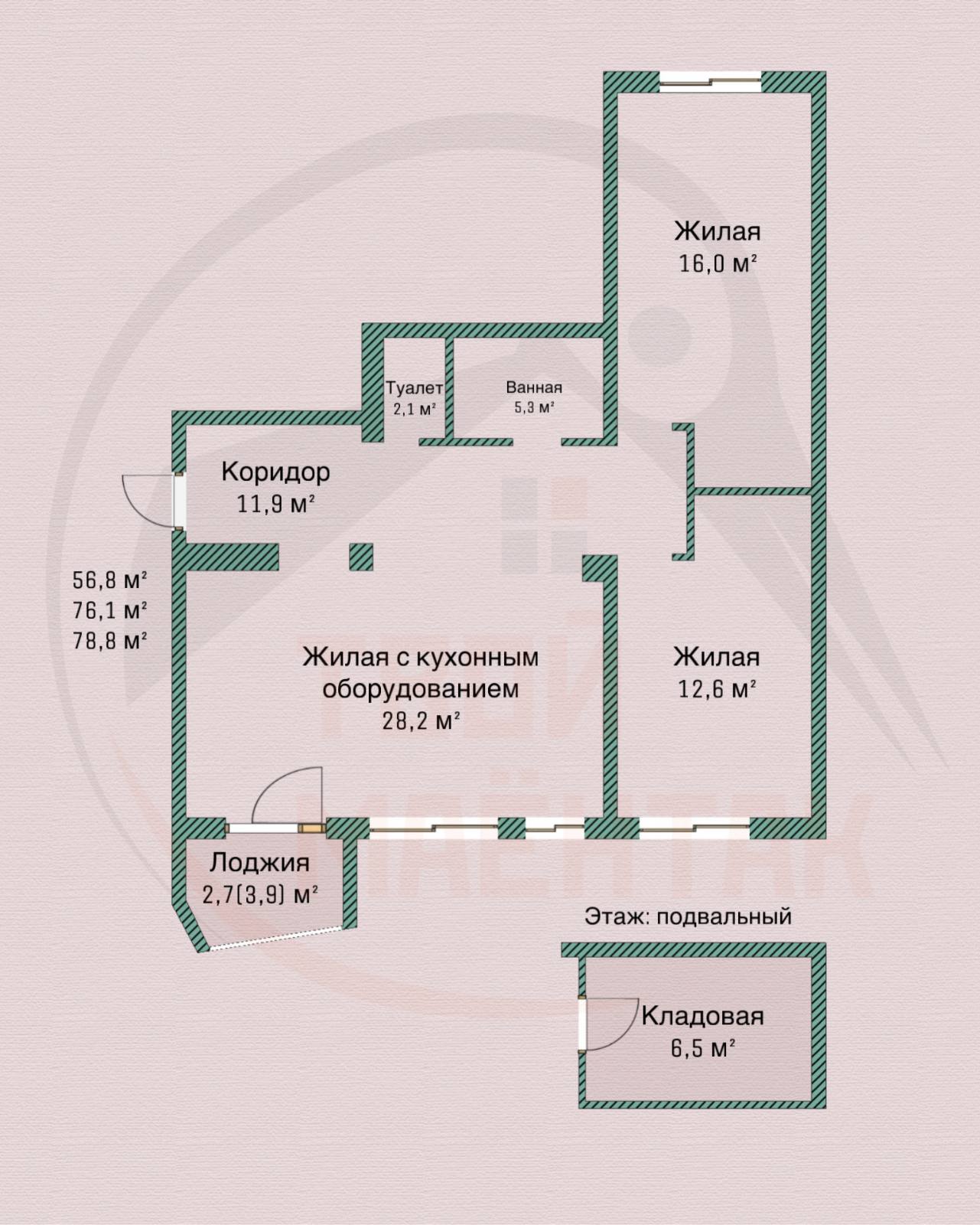Квартира расположена на 3 этаже 9-этажного дома. Площадь квартиры составляет 78.8 м2 (76.1 м2 жилая), высота потолков 2.73 м.