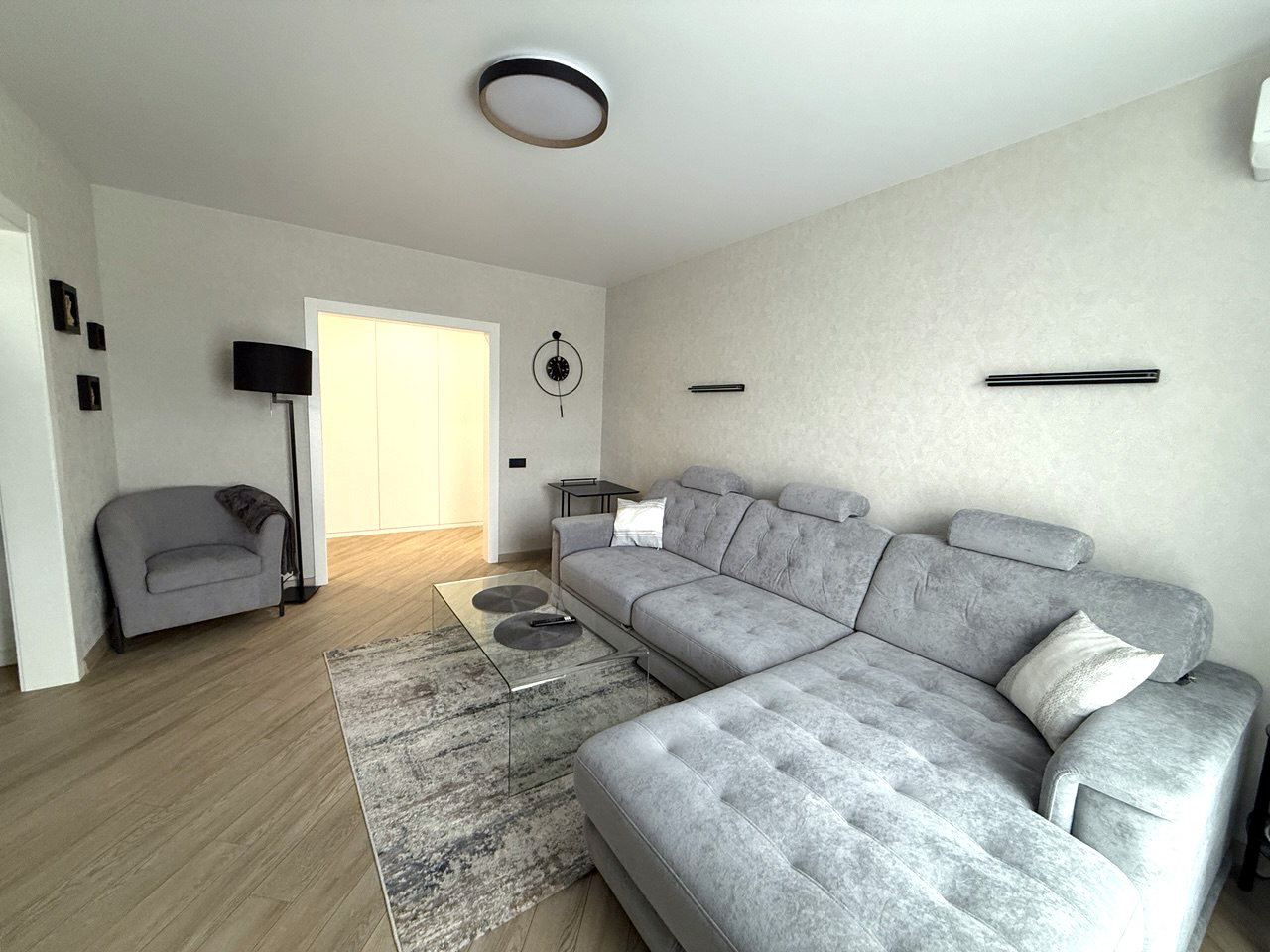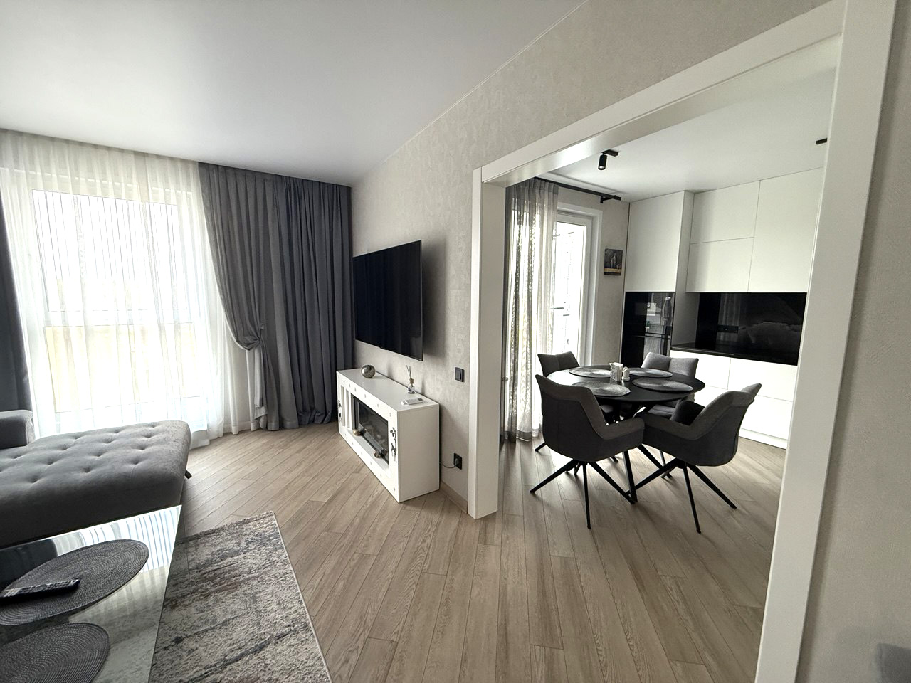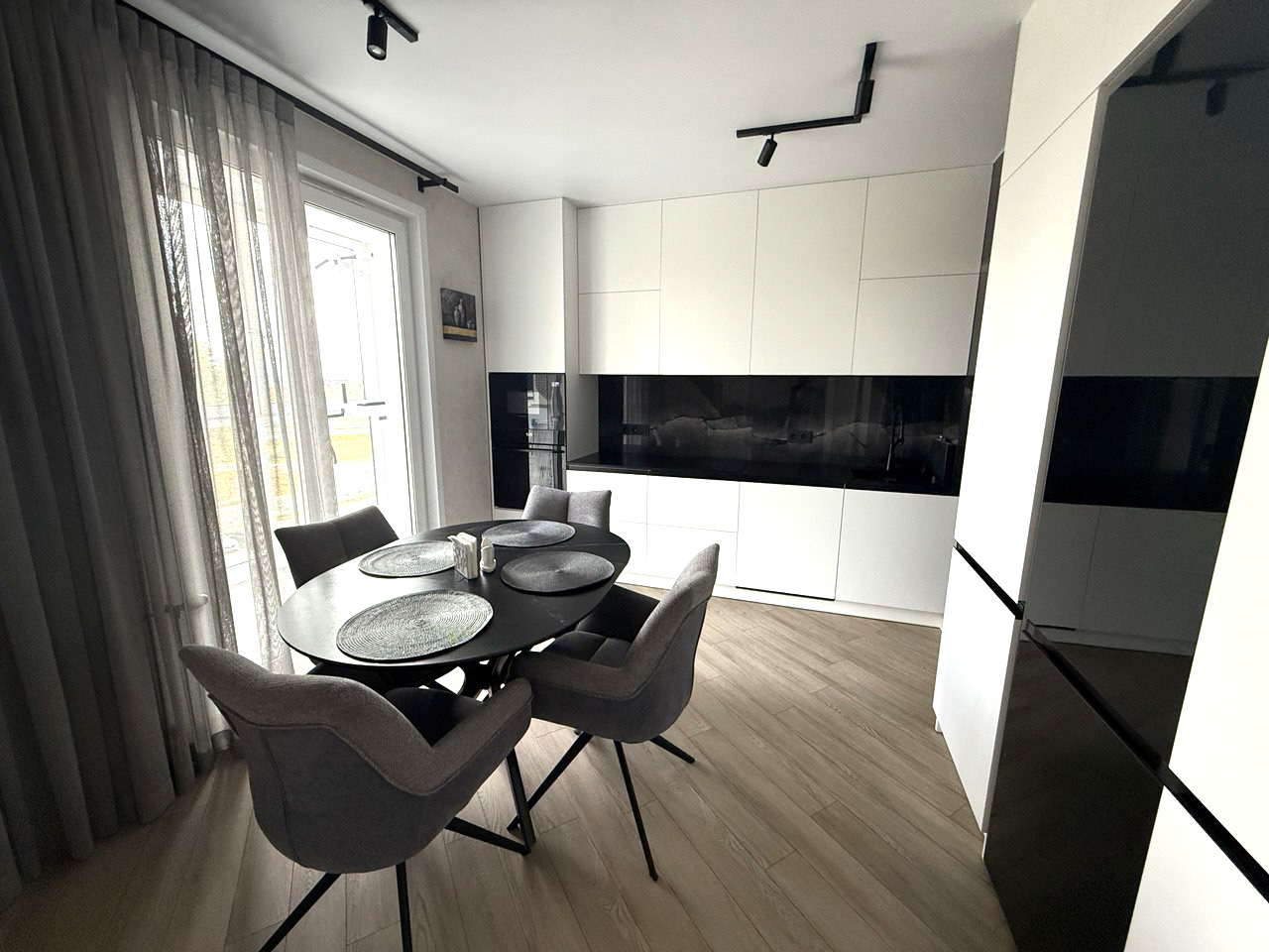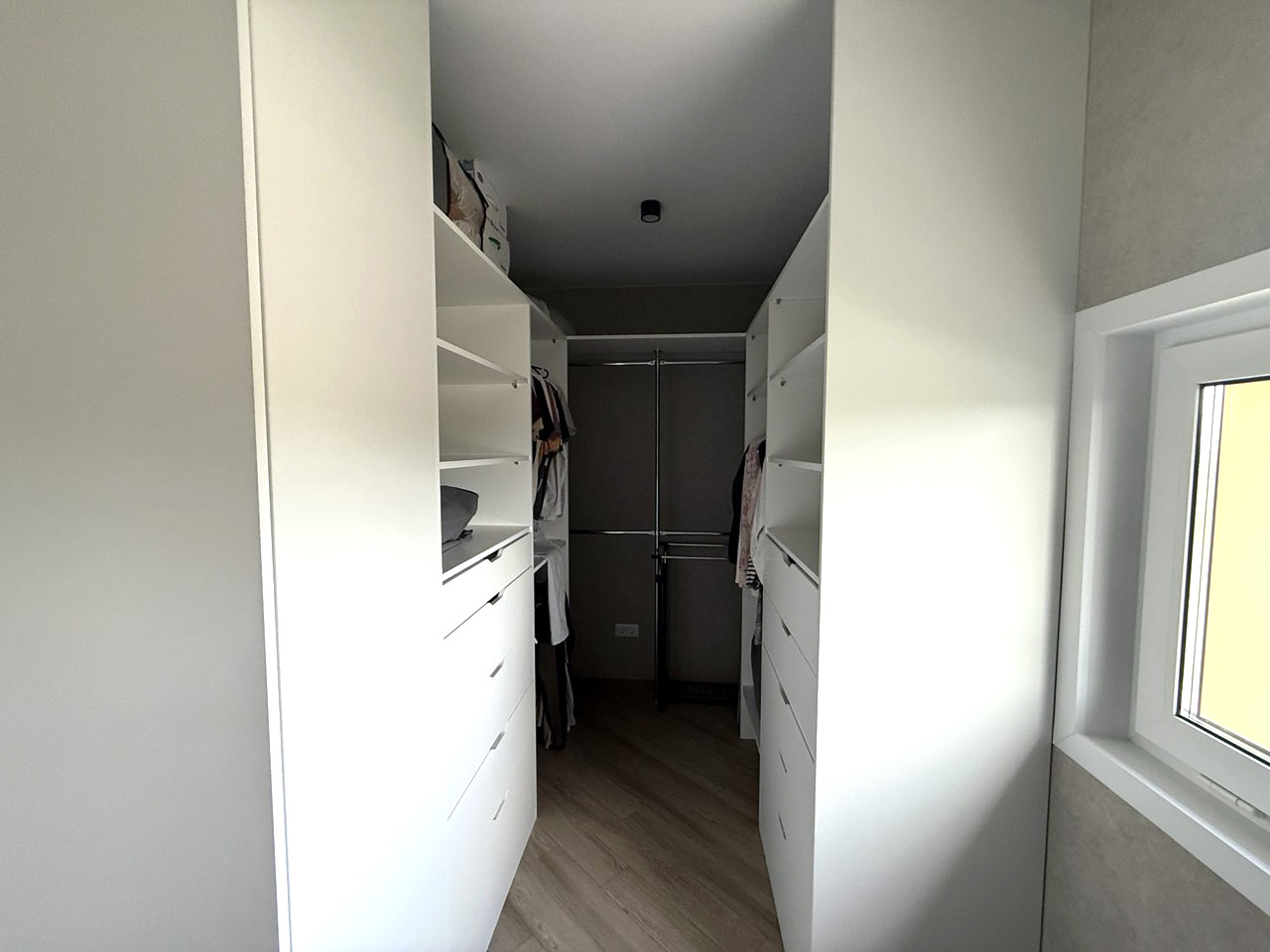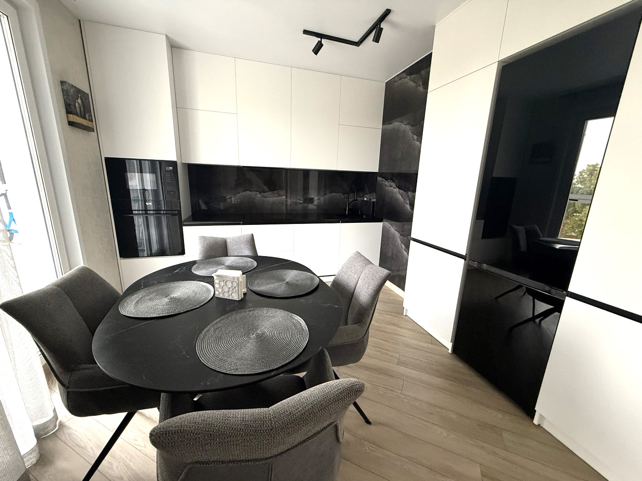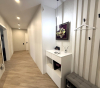 Продуманное планировочное решение – выделены две отдельные спальные комнаты, одна из которых представляет собой мастер-спальню со своим санузлом с душевой кабиной и просторной гардеробной комнатой, уютная гостиная с электрокамином, кухня оборудована встроенной техникой (духовой шкаф, свч, вытяжка, посудомоечная машина, варочная панель и др.), второй санузел оборудован ванной.