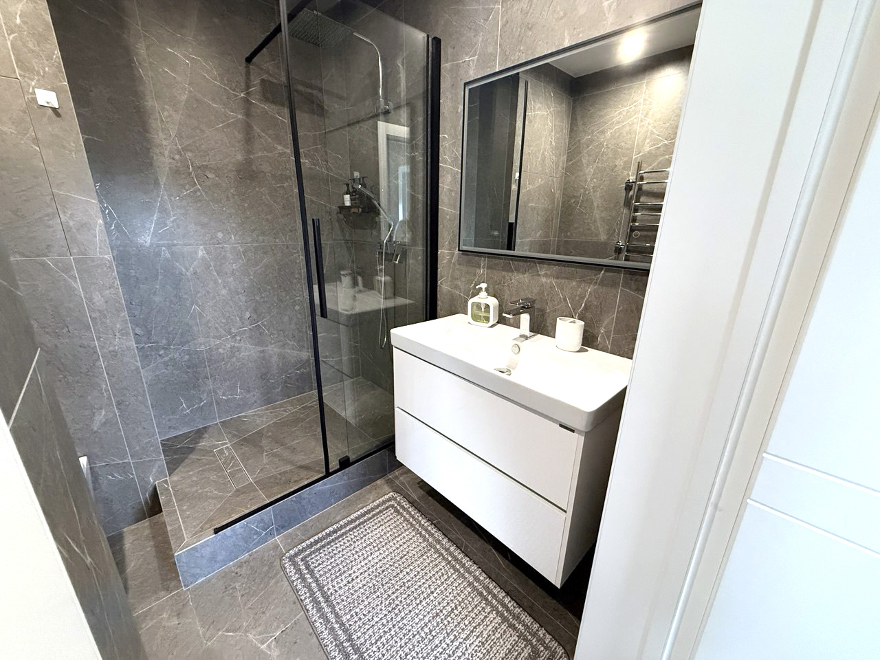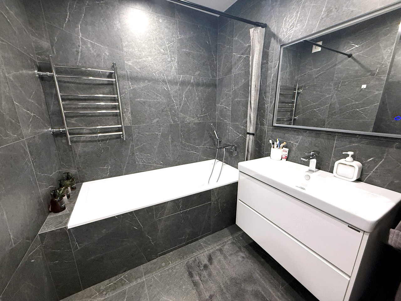 Выполнен качественный ремонт в спокойных тонах. Техника и сантехника импортных