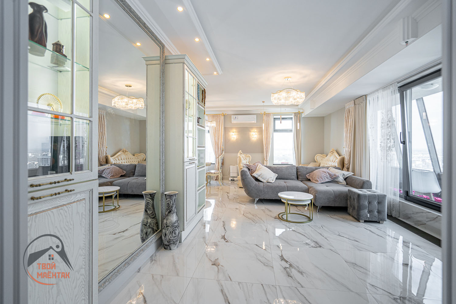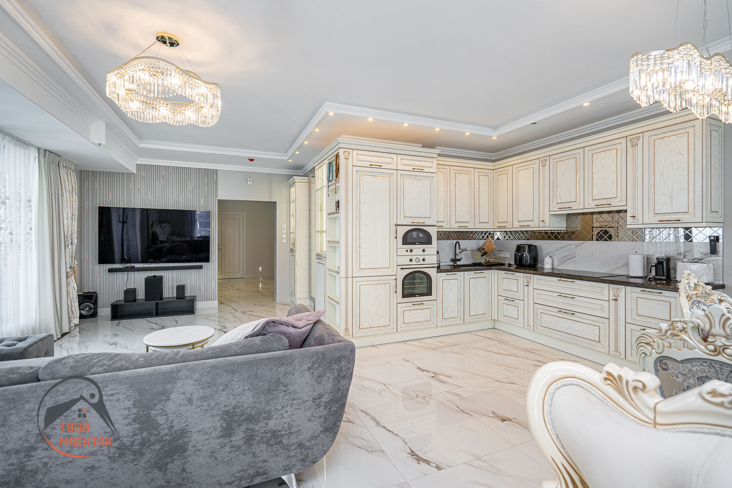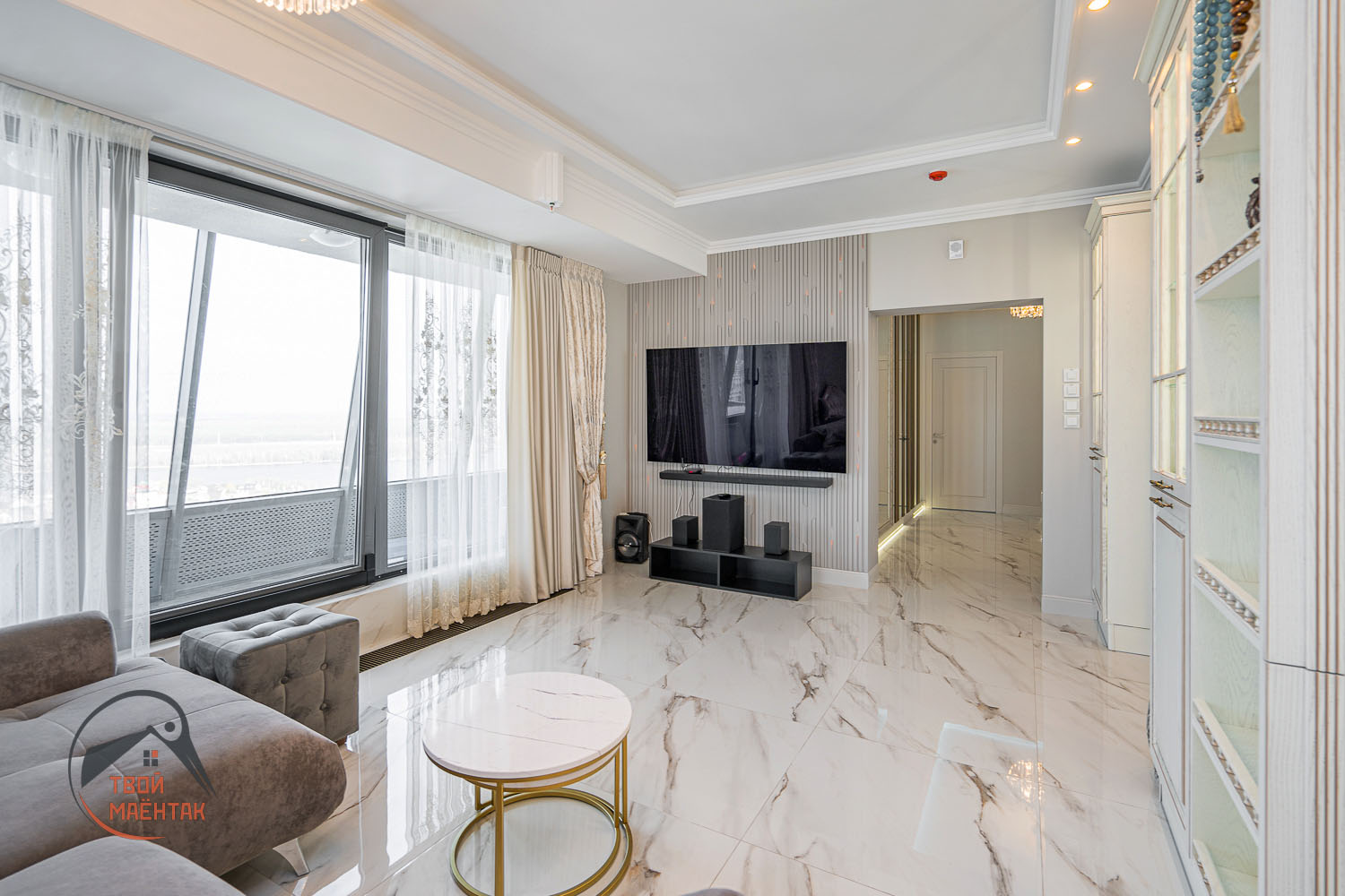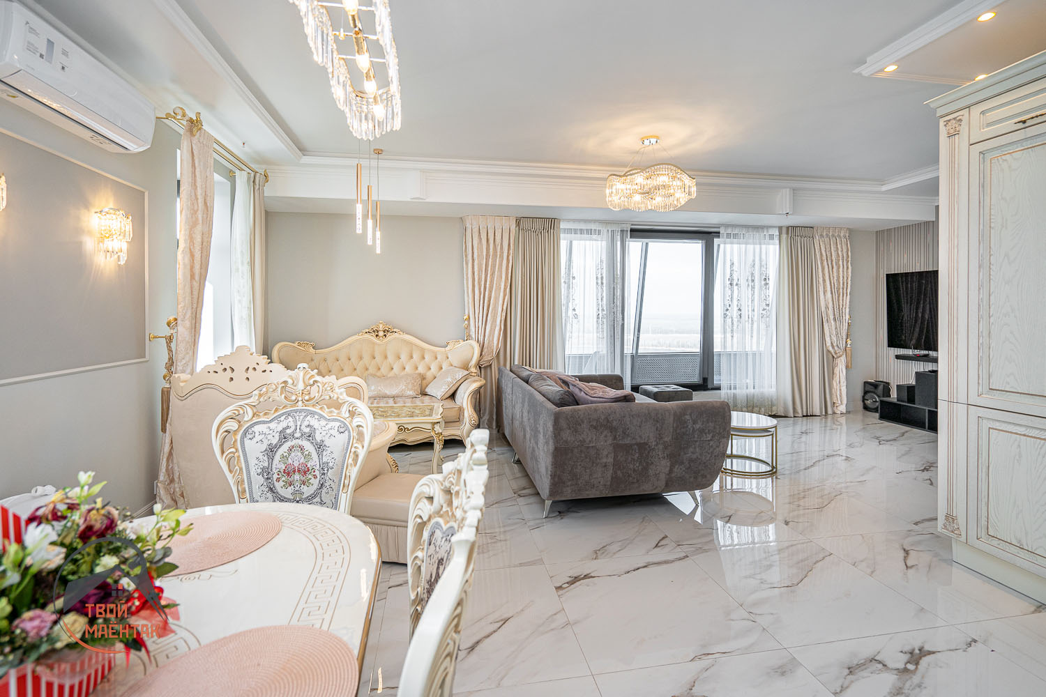 Просторная квартира с дизайнерским ремонтом и панорамным видом в престижном ЖК “Лазурит” премиум класса.