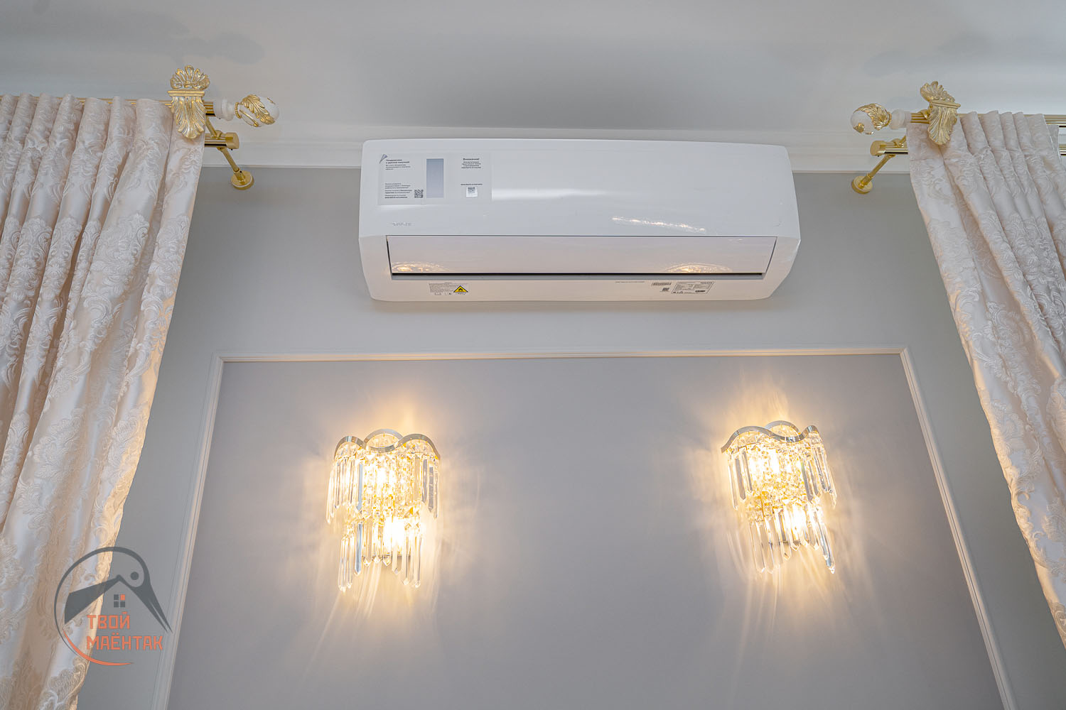 Современная система кондиционирования: 3 кондиционера (1 компрессор и 3 внутренних блока), а также система замера уровня кислорода в помещении и подачи