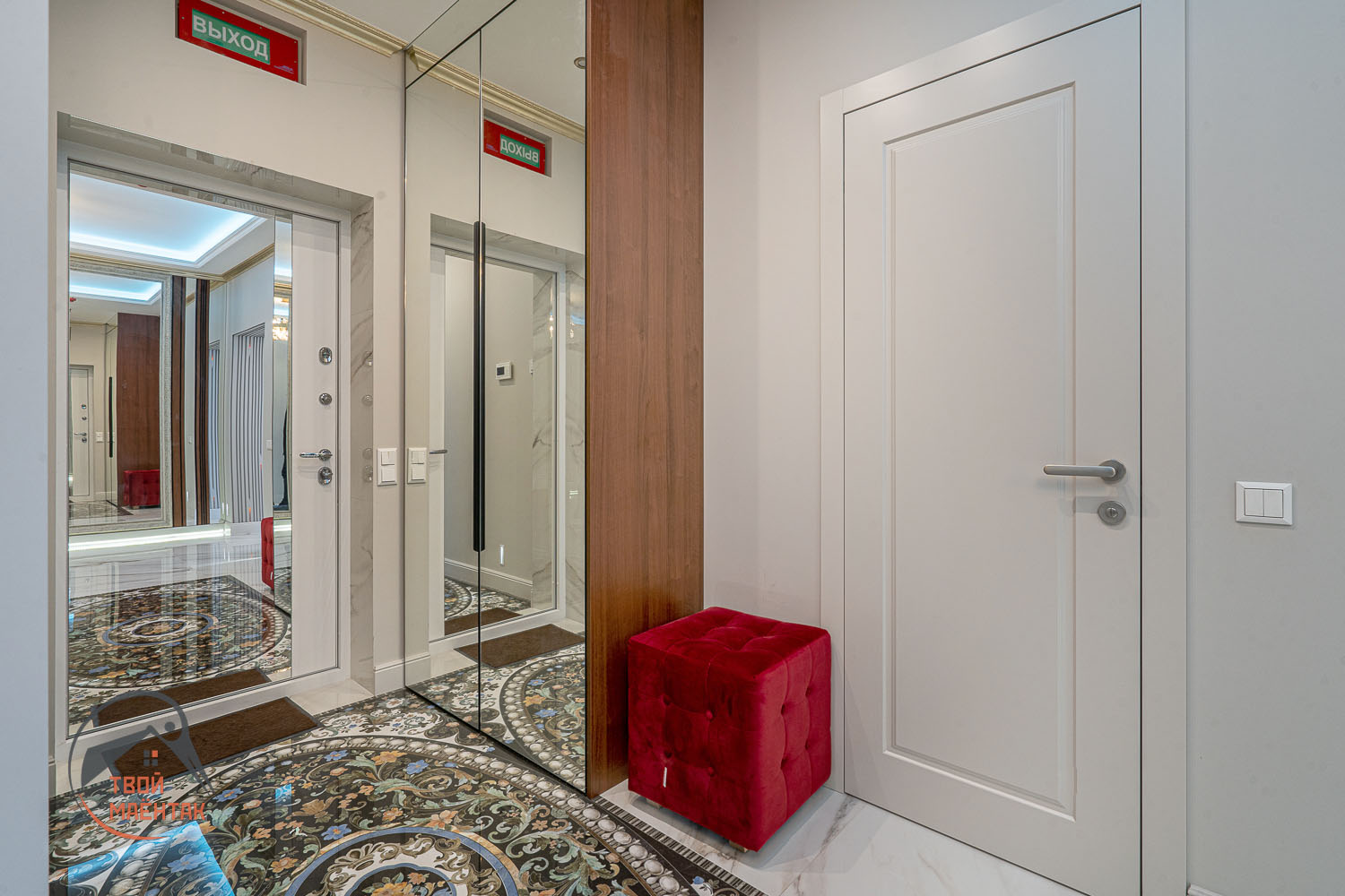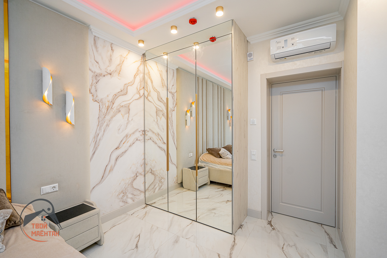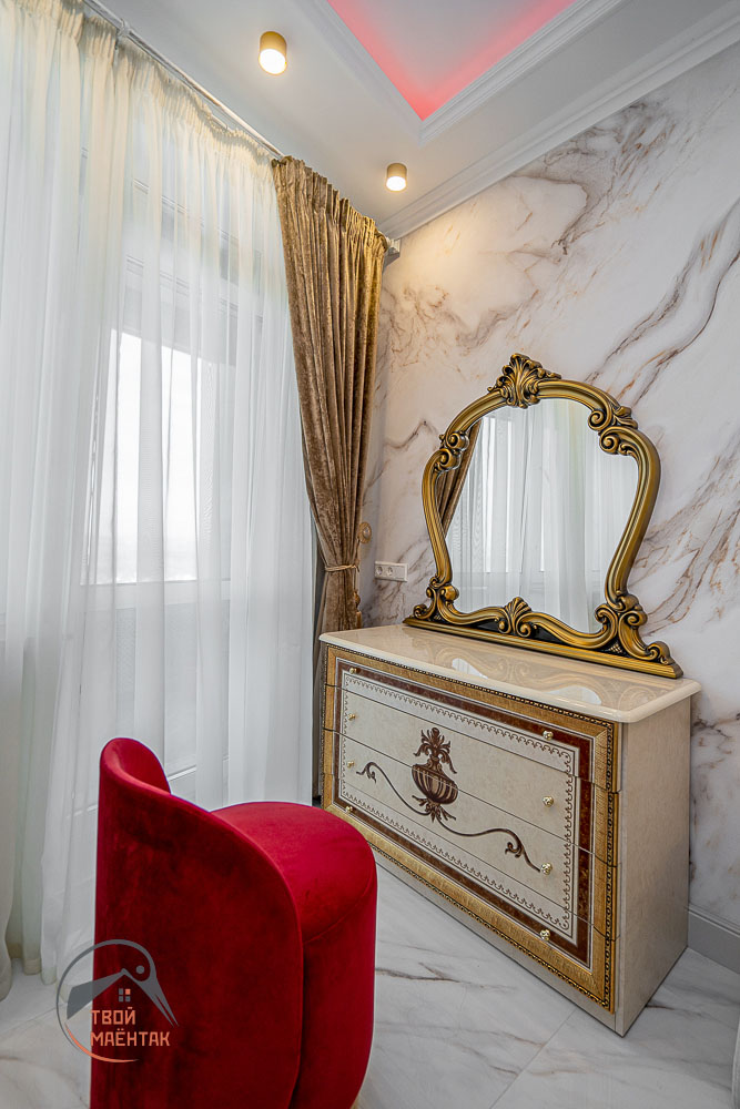 В квартире выполнен дизайнерский ремонт с использованием высококачественных материалов отделки и современных технологий.