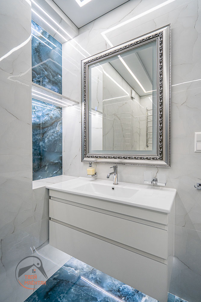 Потолки и стены с дополнительной подсветкой, которая создает комфорт и уют в темное время суток.