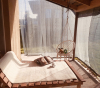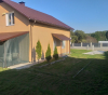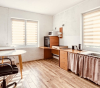 Квартира в частном доме,занимает два этажа. Первый этаж кухня,гостиная,комната,терраса. Второй этаж мансардный, 3 жилые комнаты,санузел.