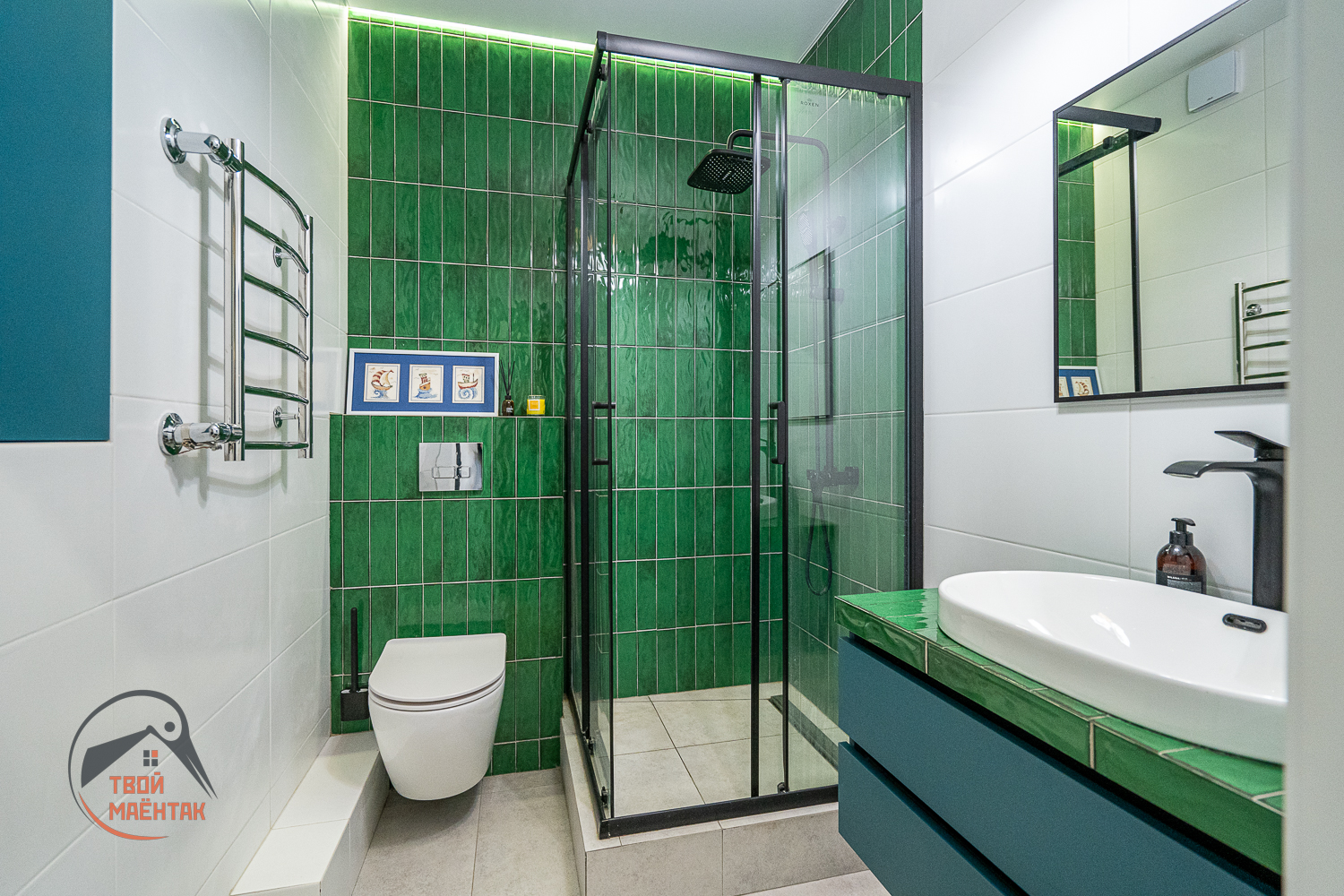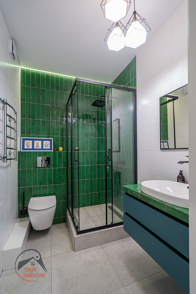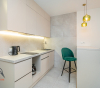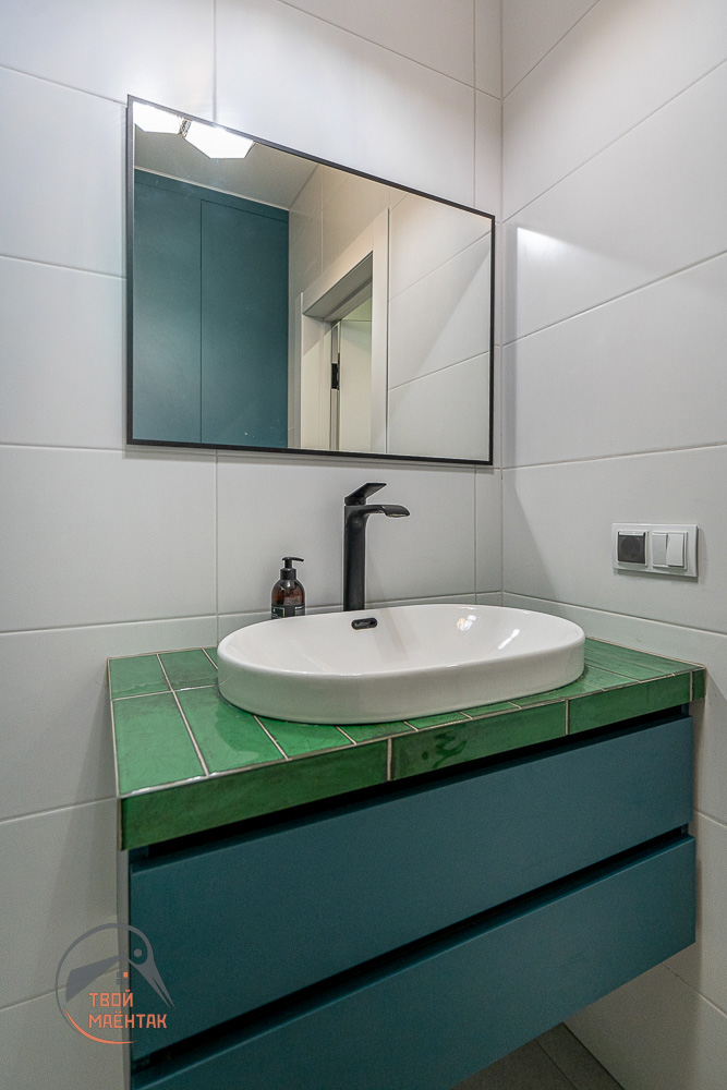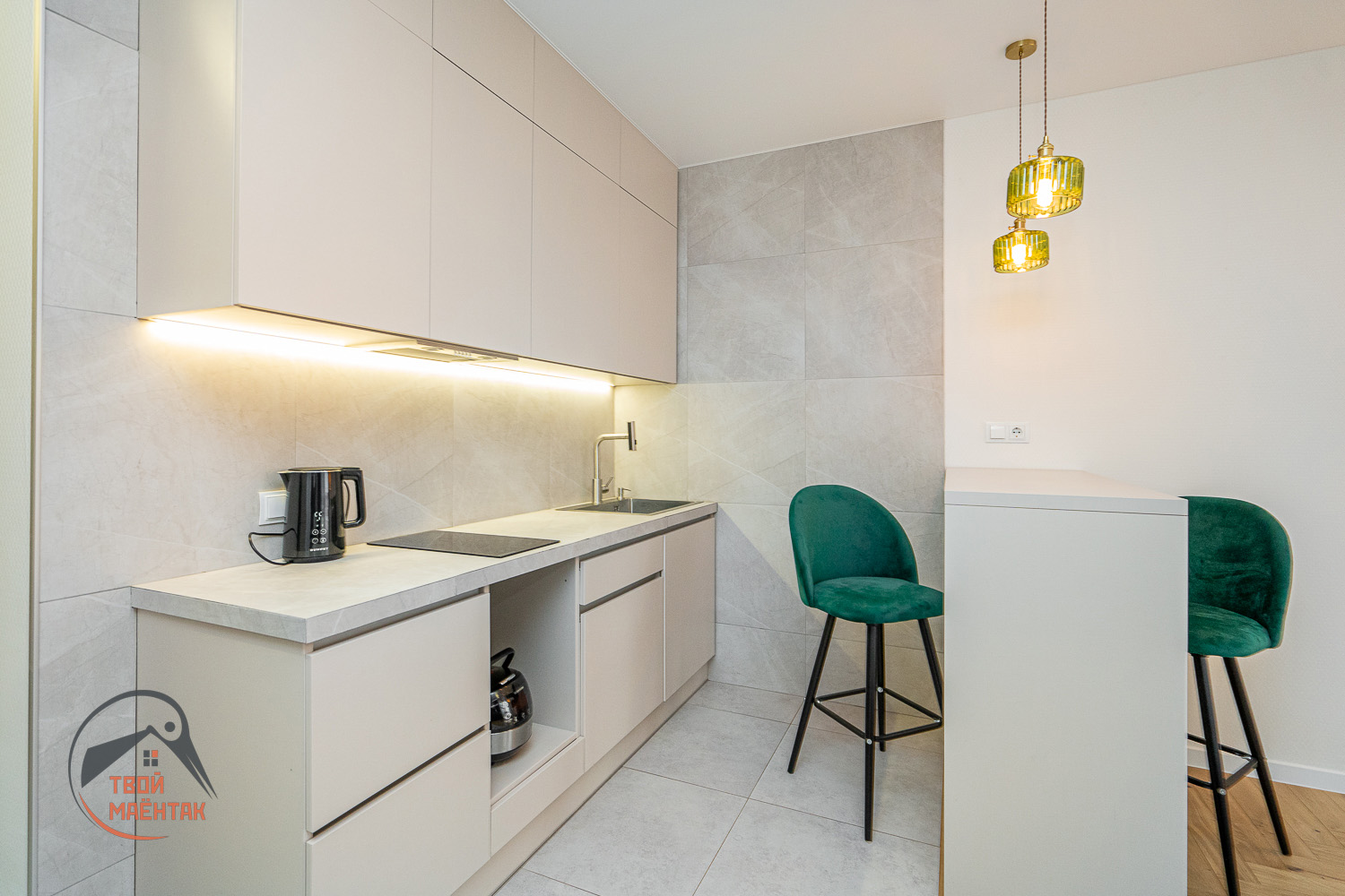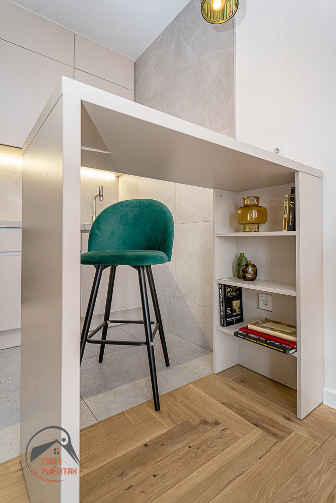 Столешница, рабочая кухонная зона, пол в с/узле и прихожей- керамогранит.