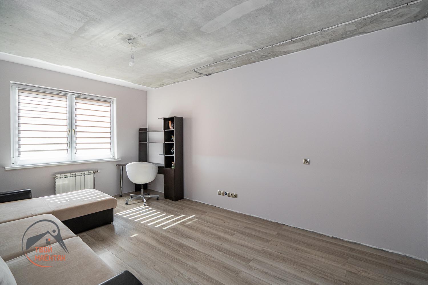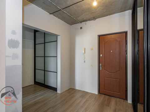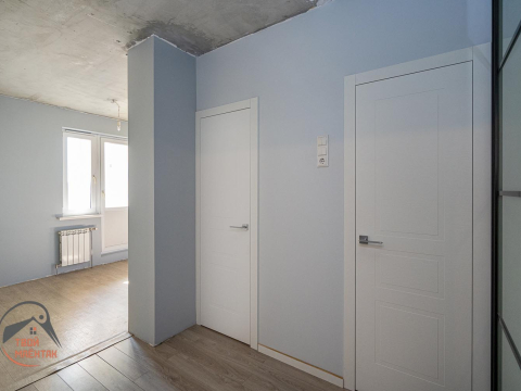 В квартире выровнены и окрашены стены, ванная и туалет облицованы плиткой, установлены 2 шкафа-купе, уложен ламинат.