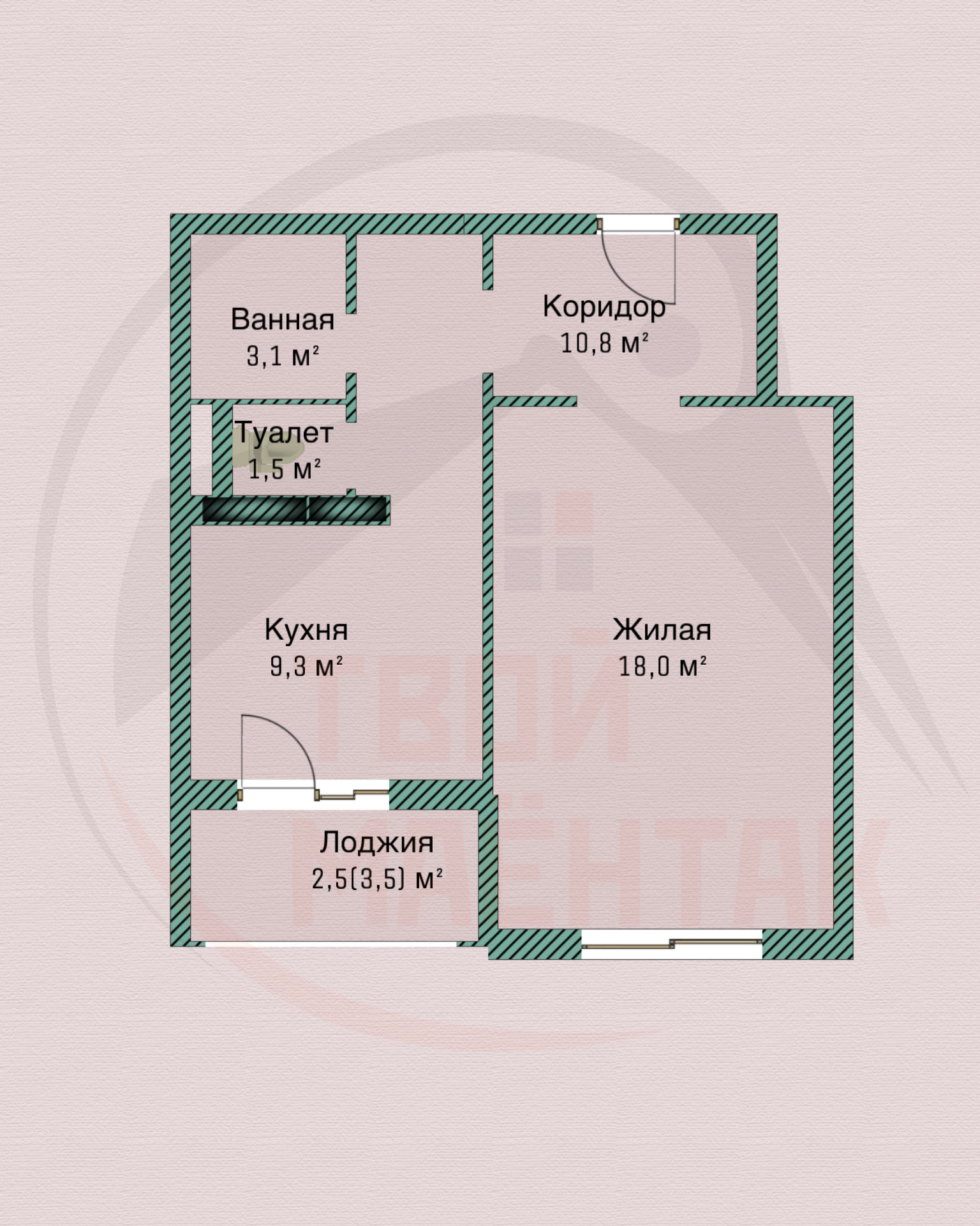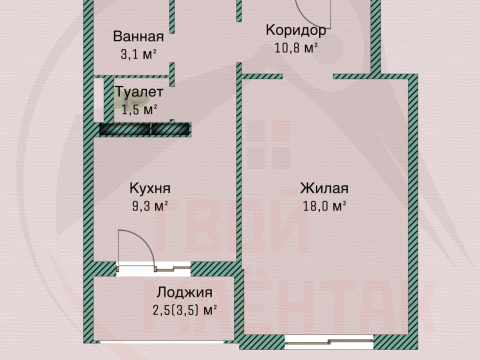 Большая однокомнатная квартира, общая площадь по СНБ 45,2 кв.м., комната – 18 кв.м., кухня – 9,3 кв.м.