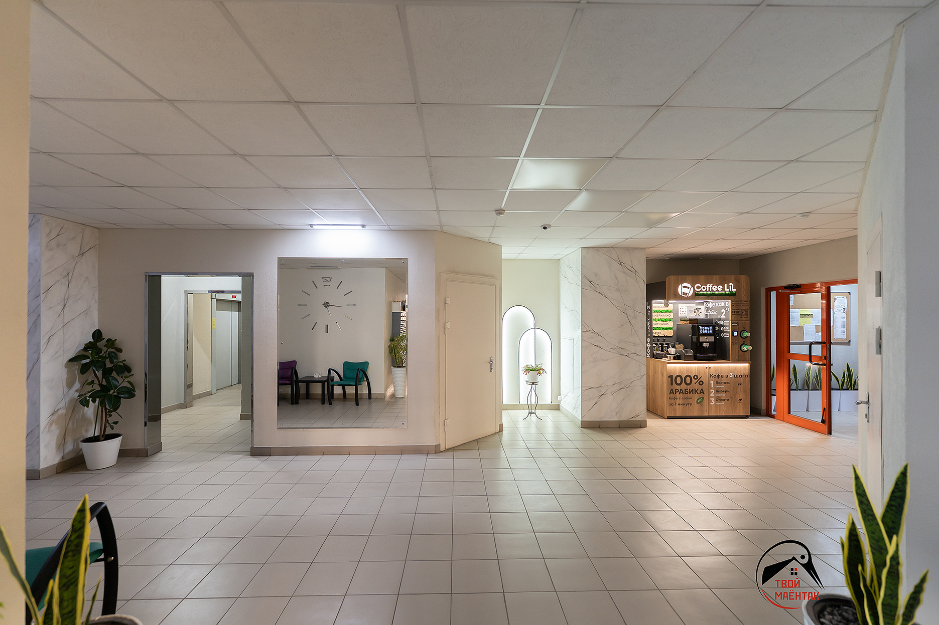 Современный дом с консьержем и четырьмя лифтами.