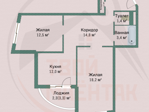 Продуманная планировка: две изолированные спальни и просторная кухня 12 м2 с выходом на застеклённую лоджию.