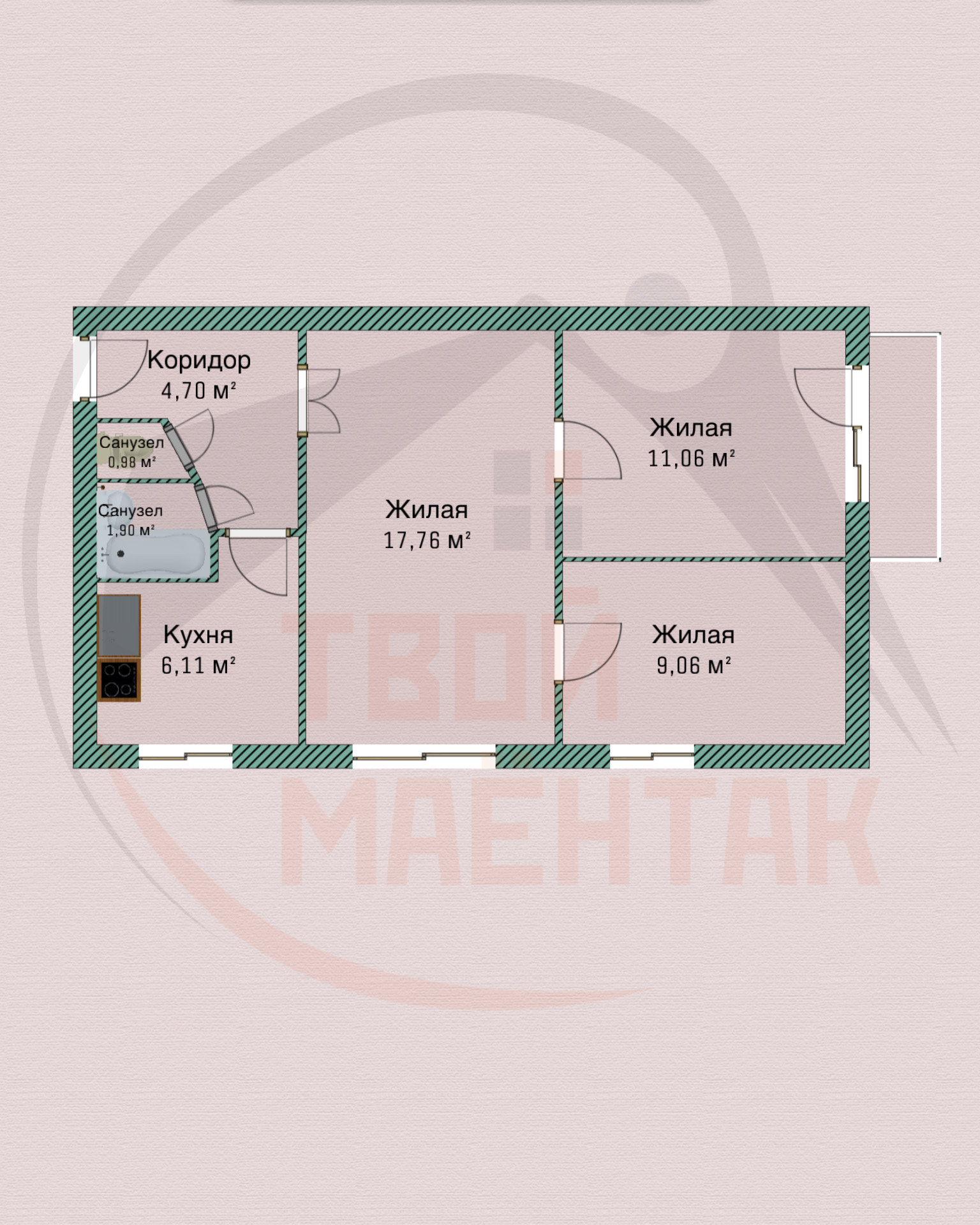 В стоимость квартиры входит встроенная кухня и шкаф-купе.