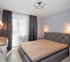 В спальне большая двуспальная кровать (220х200), туалетный столик, комод, встроенный шкаф.