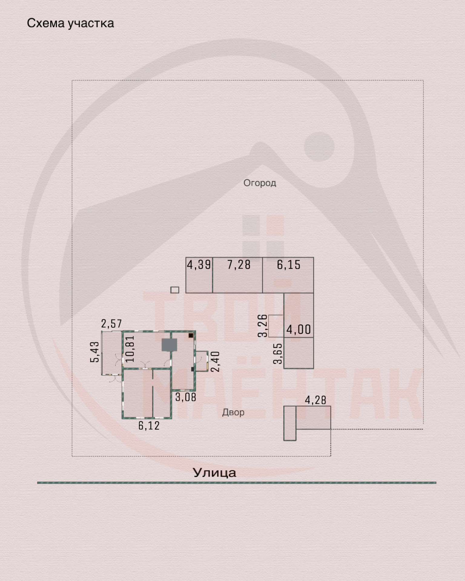 Участок ровный, разделен на хозяйственную часть, где очень удобно, расположены все хоз. постройки, баня и участок с садом, теплицей, огородом.