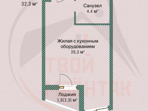 Студия площадью по СНБ - 32.3 м.кв. ,общая- 31 м.кв.