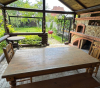 - Терраса с печью для приготовления пищи, камин, место для барбекю, Летняя кухня .