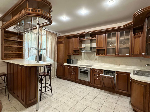 - Кухня их массива древа с импортной бытовой техникой ( холодильник, стиральная машина, духовка, вытяжка, варочная поверхность)