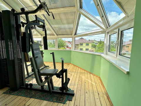 - В доме 10 комнат, 5 спален, гостиная с камином и кабинет- библиотека с камином, гардеробная, столовая, терраса на втором этаже оборудована под тренажерный зал, зимний сад, в доме три входа, 4 санузла, 3 кладовых, прачечная, подсобные помещения.