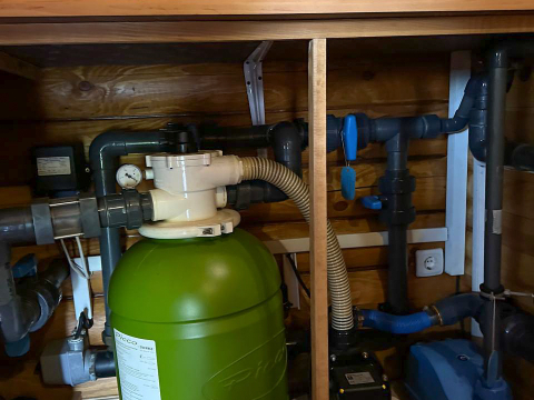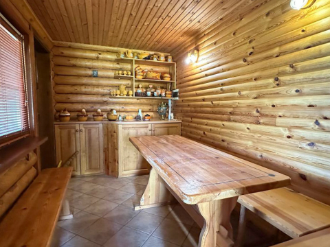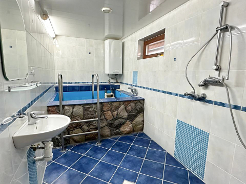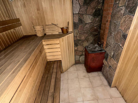 - Баня на участке ( деревянная) площадь 50 м в ней бассейн-купель глубиной 2,5 м, в бассейне вода обогащается кислородом. Баня на дровах, комната отдыха, в бане система подогрева полов на электричестве